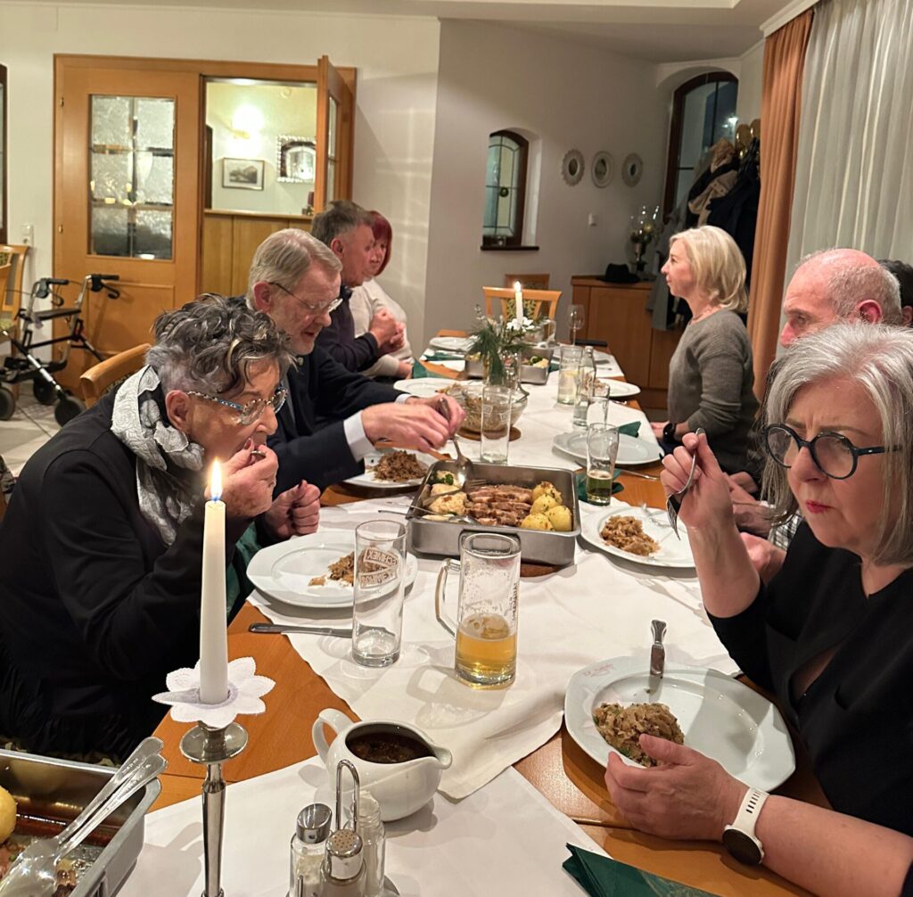 Als Dank und Anerkennung für die zahlreichen ehrenamtlichen Stunden, die die Mitglieder dieses Jahr wieder aufbrachten, um das Vereinsleben am Laufen zu halten, lud der Vorstand zu Speis und Trank ein. Traditionell gab es Bratl mit Knödel und Kraut – jährlich ein Genuss! Maria Huber überraschte noch mit selbstgemachten Kuchen und der lustige Abend klang bei dem ein oder anderem Gläschen gemütlich aus.